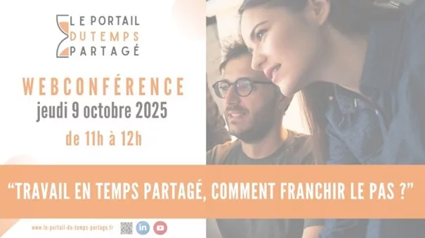 👉Rejoignez nous le Jeudi 09 octobre 2025 de 11h à 12h pour une webconférence intitulée « Travail en temps partagé, comment franchir le pas? » et animée par le Portail du temps partagé !